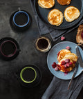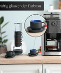 Espreso set skodelic naredi vsako jutro posebno doživetje. Skodelice imajo sodobno, mat črno zunanjost, ki jim daje eleganten videz. V notranjosti presenetijo s sijočo, močno barvo. Visokokakovostna obdelava lončevine poskrbi, da barve izstopajo in zagotavlja visoko odpornost proti obrabi.