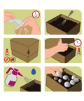 🌿 Ko opazite belo tančico na površini zemlje (micelij), lahko škatlo postavite na višjo temperaturo od 20 do 22°C in enkrat na dan poškropite z vodo, da se ne izsuši. Pokrijte s pokrovom.