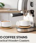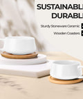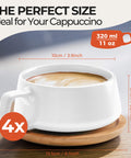 Set skodelic izstopa s svojim elegantnim videzom in jim daje kvaliteten sijoč videz. Skodelice za kapučino z lesenimi podstavki so odličen vsakdanji spremljevalec in se podajo k vsaki namizni dekoraciji.