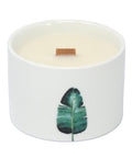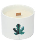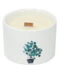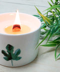 Izdelane v okroglih keramičnih kozarcih, ki jih je mogoče ponovno uporabiti. Vsaka sveča vsebuje lesen stenj namesto tradicionalnega stenja.