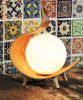 Izdelana je iz pravega lista kokosa, posebne vrste, ki se pri ogrevanju lahko preoblikujejo in zvijejo. Svetilo je narejeno od bombažne niti, dražalo pa iz lista kokosove palme.