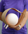 Svetilka je ročno izdelana v družinskem podjetju na Baliju, kjer uporabljajo samo naravne materiale: kokosov list, bombaž in les albesia.